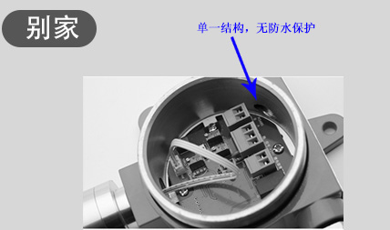 他家普通氣體探測(cè)器無單獨(dú)接線區(qū)域,需外加接線盒,成本增加,施工不方便。無防水處理,進(jìn)水后設(shè)備報(bào)廢。